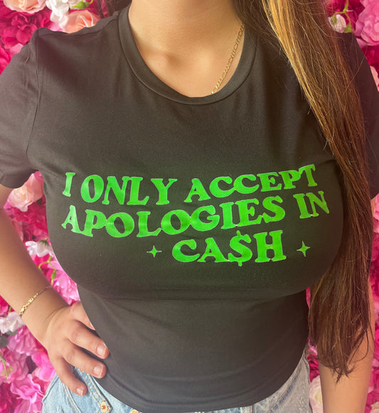 "Cash Only" Crop Tee-Black