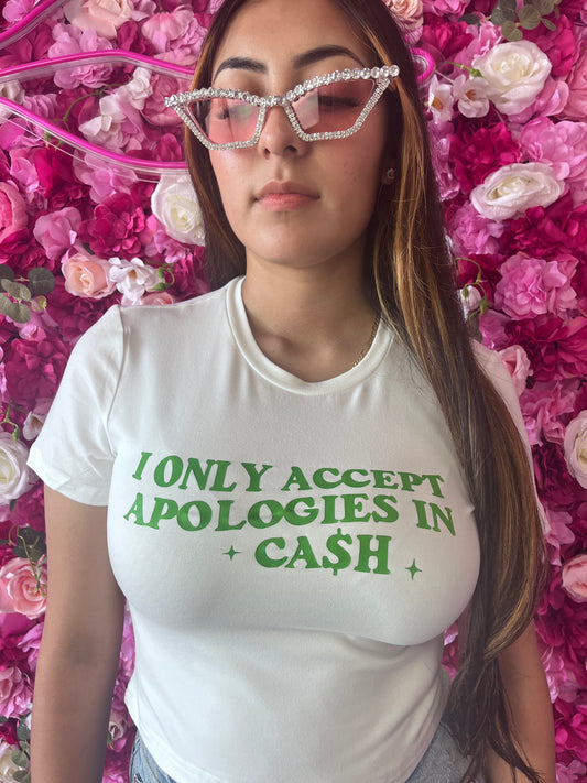 Cash Only" Crop Tee-White